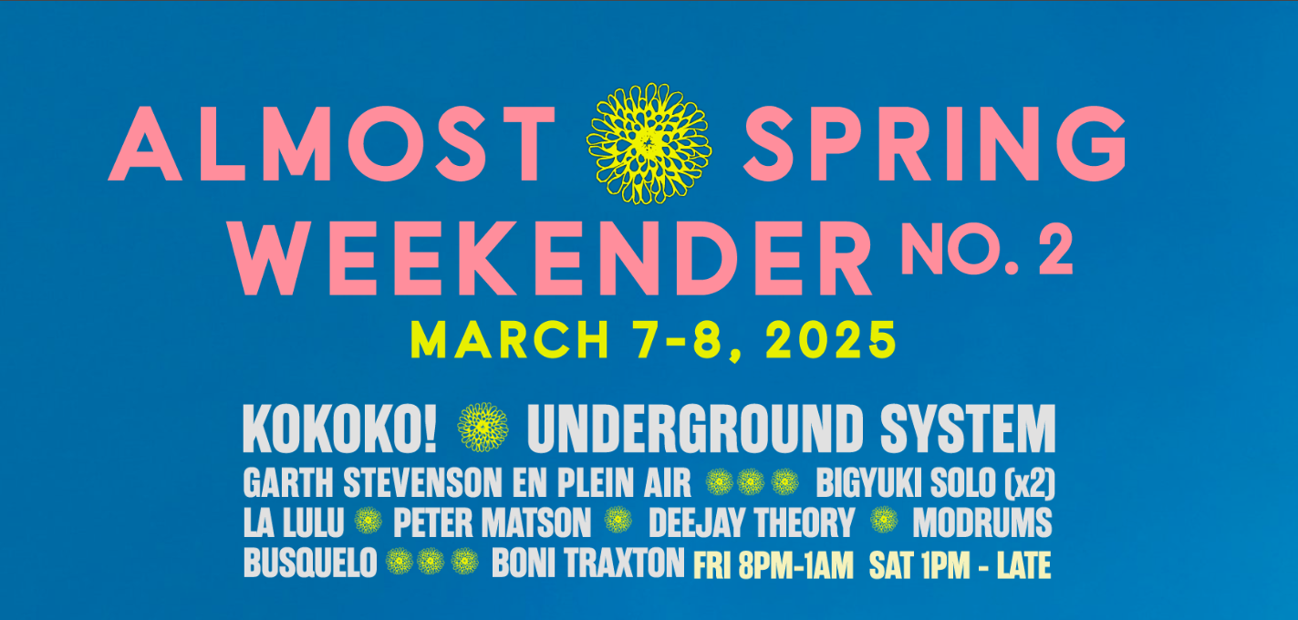 We are excited to bring you another collaboration with the Secret Planet Music team. The second edition of the Almost Spring Weekender promises to be not-to-be-missed gathering of live music and community with some great artists returning for a second year like Big Yuki, Garth Stevensen, Deejay Theory, and DJ Busquelo, and amazing new faces to Race Brook Lodge in Kokoko! and Underground System. Tickets are available at the Secret Planet Website.